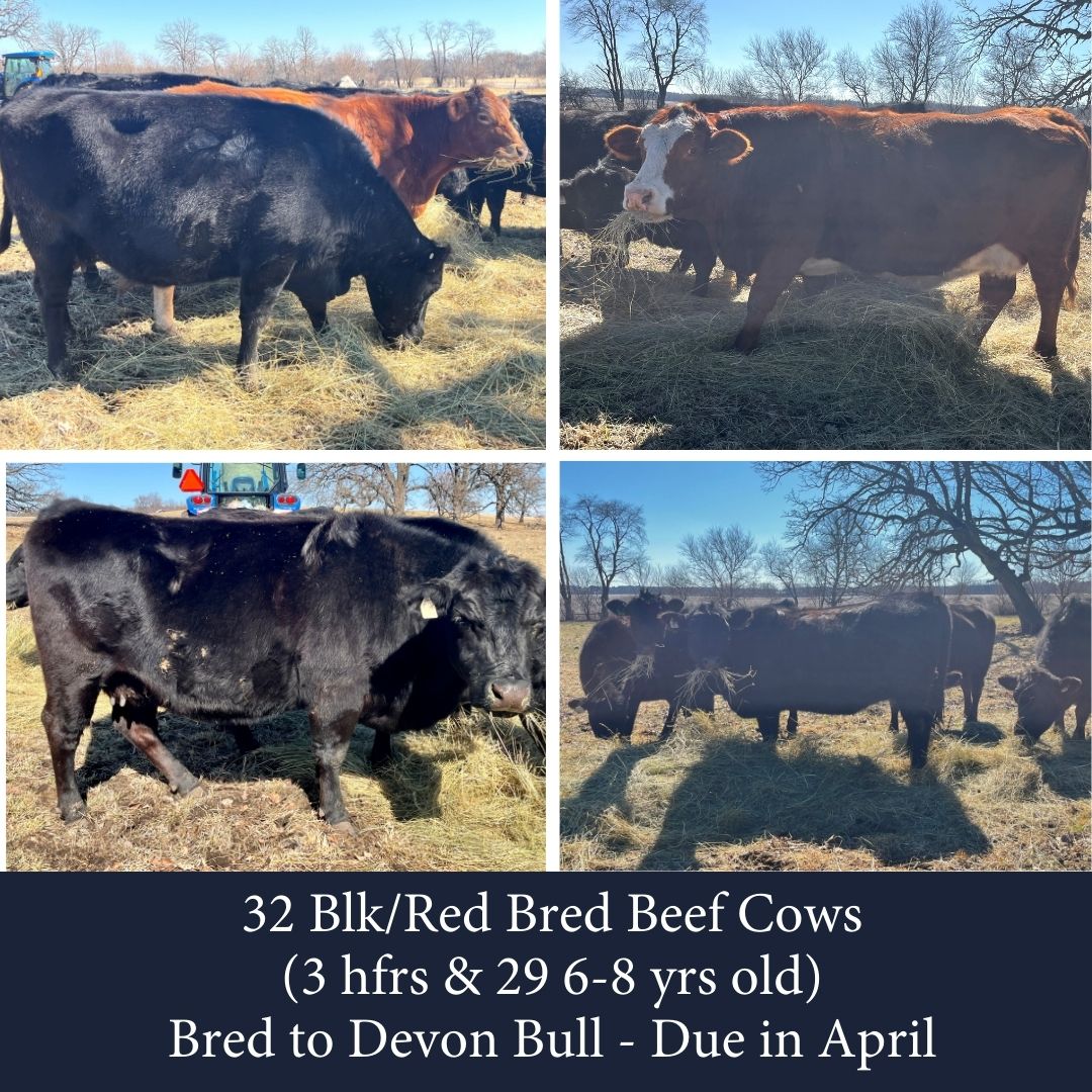 HOLSTEIN FEEDERS COMING: March 20, 2026 CONSIGNMENTS FOR THE NEXT FEEDER SALE: CROSS-BRED FEEDERS COMING: March 20, 2026 CONSIGNMENTS FOR THE NEXT FEEDER SALE: BEEF FEEDERS COMING: March 20, 2026 CONSIGNMENTS FOR THE NEXT FEEDER SALE: 13 Beef strs/hfrs 650-700# vaccinated, poured, weaned 1 Beef hfr 450# vaccinated, poured,weaned BRED BEEF COWS COMING: March 18, 2026 CONSIGNMENTS FOR THE NEXT BRED BEEF COW SALE: 32 Blk/Red Bred Beef Cows (3 hfrs & 29 6-8 yrs old) Bred to Devon Bull Due in April *Pictured Below 10 Blk Angus/Limo bred to blk bull vaccinated due end og March/April 3 Blk Angus cows Bred to Blk Bull Due May/June Solid mouth cows 2 Hereford Heifers registered bred to Hereford bull 2 Hereford Cows (1 3 year old & 1 5 Year old) registered bred to Hereford bull 1 Blk Angus Cow Bred to blk bull due in May