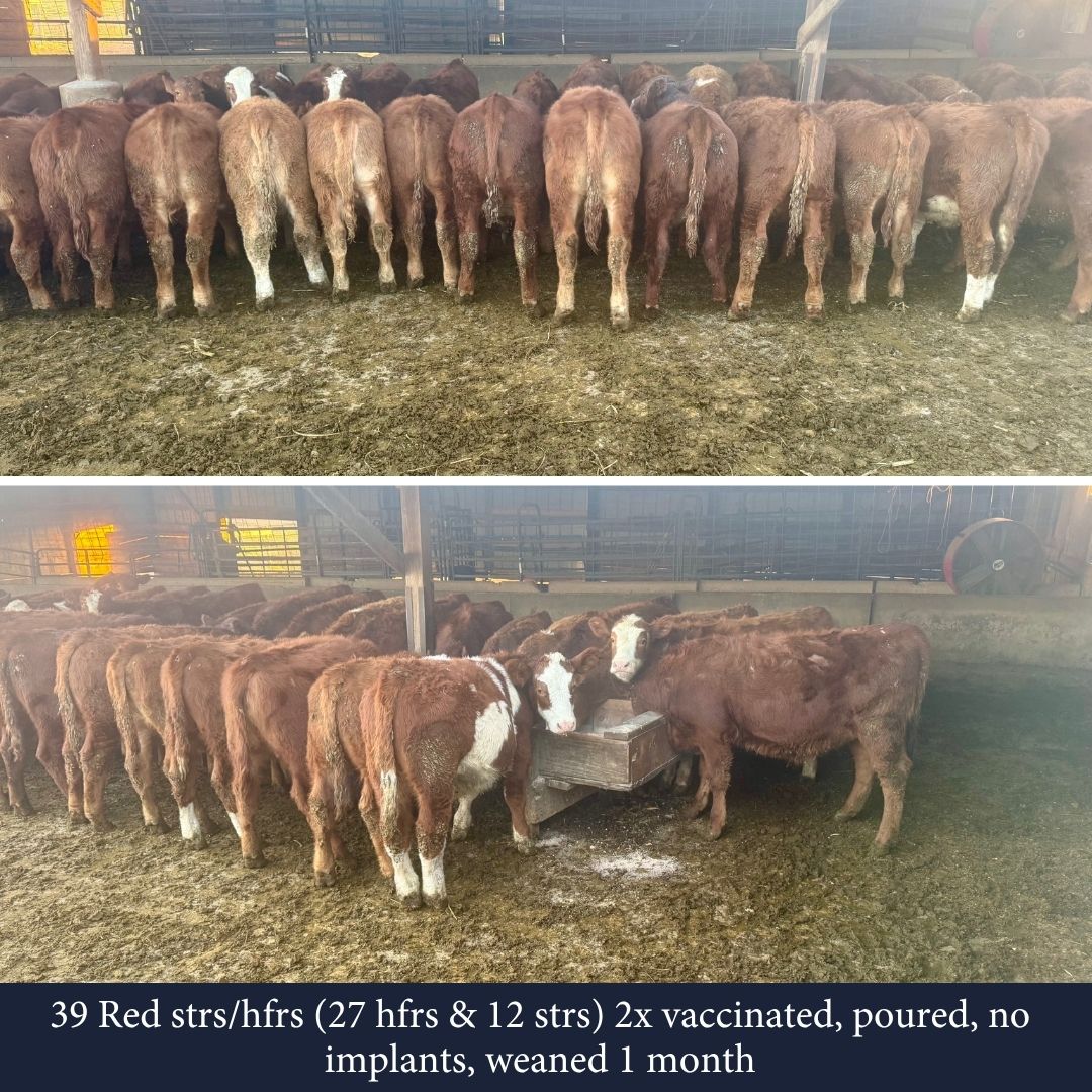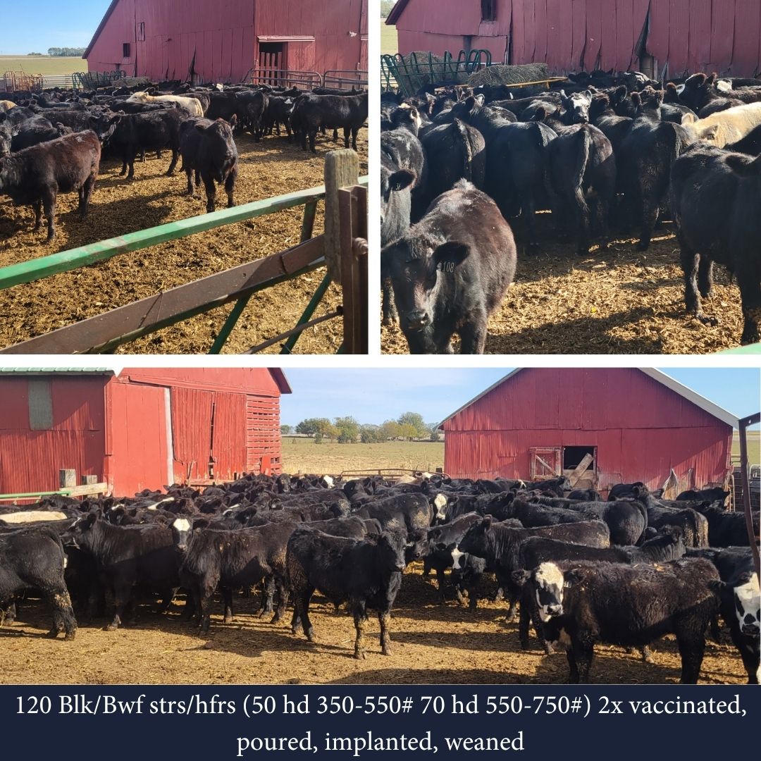 HOLSTEIN FEEDERS COMING: December 5, 2025 CONSIGNMENTS FOR THE NEXT FEEDER SALE: CROSS-BRED FEEDERS COMING: December 5, 2025 CONSIGNMENTS FOR THE NEXT FEEDER SALE: BEEF FEEDERS COMING: November 21, 2025 CONSIGNMENTS FOR THE NEXT FEEDER SALE: 120 Blk/Bwf strs/hfrs (50 hd 350-550# 70 hd 550-750#) 2x vaccinated, poured, implanted, knife cut, weaned 60 Blk/Red strs/hfrs 575-625# 2x vaccinated, poured, no implants, weaned 6 weeks 55 Blk strs/hfrs 550-650# vaccinated, poured, no implants, weaned Sept. 1st 50 Blk/Red strs/hfrs 400-650# 2x vaccinated, poured, no implants, weaned in Sept. 48 Hereford strs 900-1100# vaccinated, weaned, bunk broke TMR not pushed on grain 39 Red strs/hfrs (27 hfrs & 12 strs) 500-550# 2x vaccinated, poured, no implants, weaned 1 month 30 Blk strs/hfrs 600-700# 2x vaccinated, poured, no implants 20 Blk/Red strs/hfrs 500-700# 1x vaccinated, poured, no implants, weaned 18 Red/Blk strs/hfrs 350-400# vaccinated, no implants weaned Oct 1st 15 Blk/red strs/hfrs 600# vaccinated, poured 15 Bwf strs/hfrs 600-650# vaccinated, poured, no implants, weaned 14 Blk hfrs 400-700# 2x vaccinated, poured, implanted, weaned 4 weeks 13 Blk/Red strs 650# 1x vaccinated, poured, no implants, weaned 10 Angus strs/hfrs (8 hd 400-550# 2 hd 600-650#) vaccinated, poured, weaned 10 Bwf/Hereford hfrs (2 hd 250# 6 hd 400-450# 2 hd 700-800#) vaccinated, poured, weaned 10 Hereford strs/hfrs 550# vaccinated, poured, knife cut 10 Semi/Angus strs 550-700# vaccinated, poured, weaned 9 Blk strs/hfrs 500-550# vaccinated, poured, implanted, weaned 60 days 8 Angus/Wagyu (1 str & 7 hfrs) 550-950# 2x vaccinated, poured, no implants, bunk broke 7 Blk strs/hfrs 450-550# 2x vaccinated, poured 6 Hereford strs/hfrs 400-600# vaccinated, poured, no implants, weaned Nov 1st 5 Blk strs 450-500# vaccinated, poured, no implants, weaned 5 Blk hfrs 650-800# vaccinated, weaned 3 Blk hfrs 700# 2x vaccinated, poured, weaned 2 Hereford str/hfr 550-650# vaccinated 1 Hereford Bull 650# vaccinated    BRED BEEF COWS COMING: November 19, 2025 CONSIGNMENTS FOR THE NEXT BRED BEEF COW SALE: 31 Bred Cows & Cow/Calf Pairs (26 Cow/Calf pairs, 5 Bred Hfrs/Cows) Herd Dispersal Due to health (26 Blk Cows/Heifers, 2 Reds, 1 Charolais, 1 Shorthorn) Calves from 10 days up 300# on cows Young Herd 19 Blk/Red/White Bred Beef Cows bred to Blk Bull Due spring (older cows) herd dispersal 2 Cow/calf pairs 7 Bred Cows (6 Blk & 1 Charlios) bred to blk bull easy calving due spring 4 Hereford bred cows bred to Red Angus Bull Due March 5 BWF bred cows bred to Red Angus Bull Due March 2 Blk Bred cows due early spring 1 Hereford bred cow (2 year old) bred to polled Hereford Bull 1 Blk hfr bred to blk bull due spring  BRED BEEF COWS: Sale held the 3rd Wednesday of every month