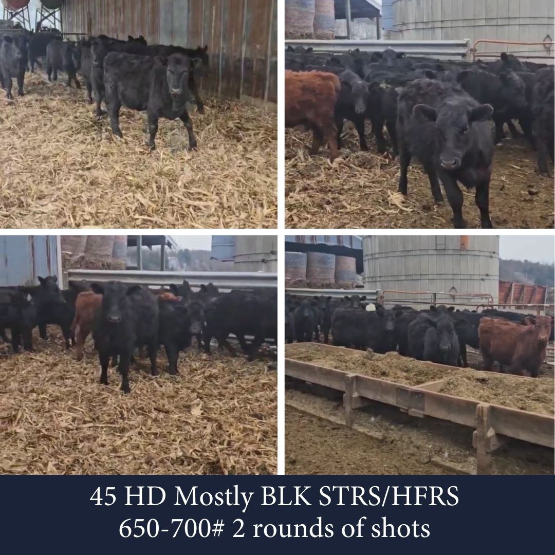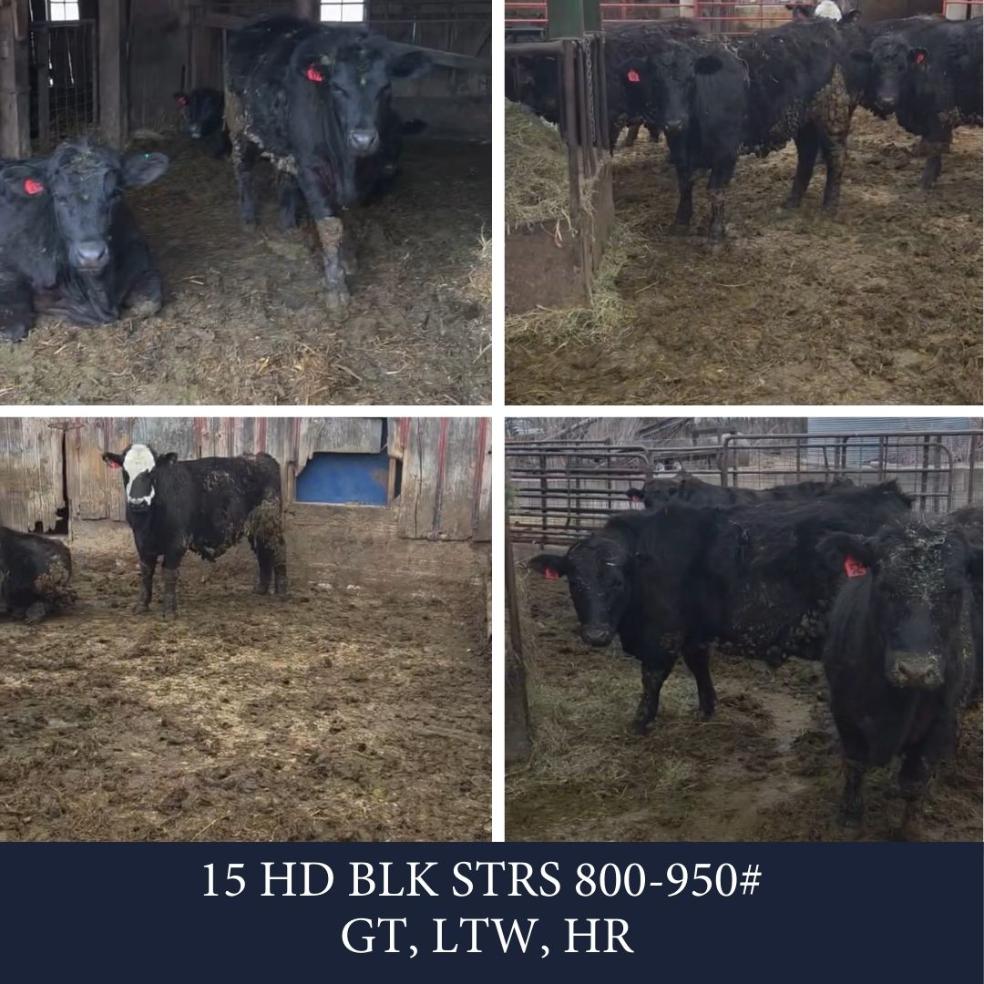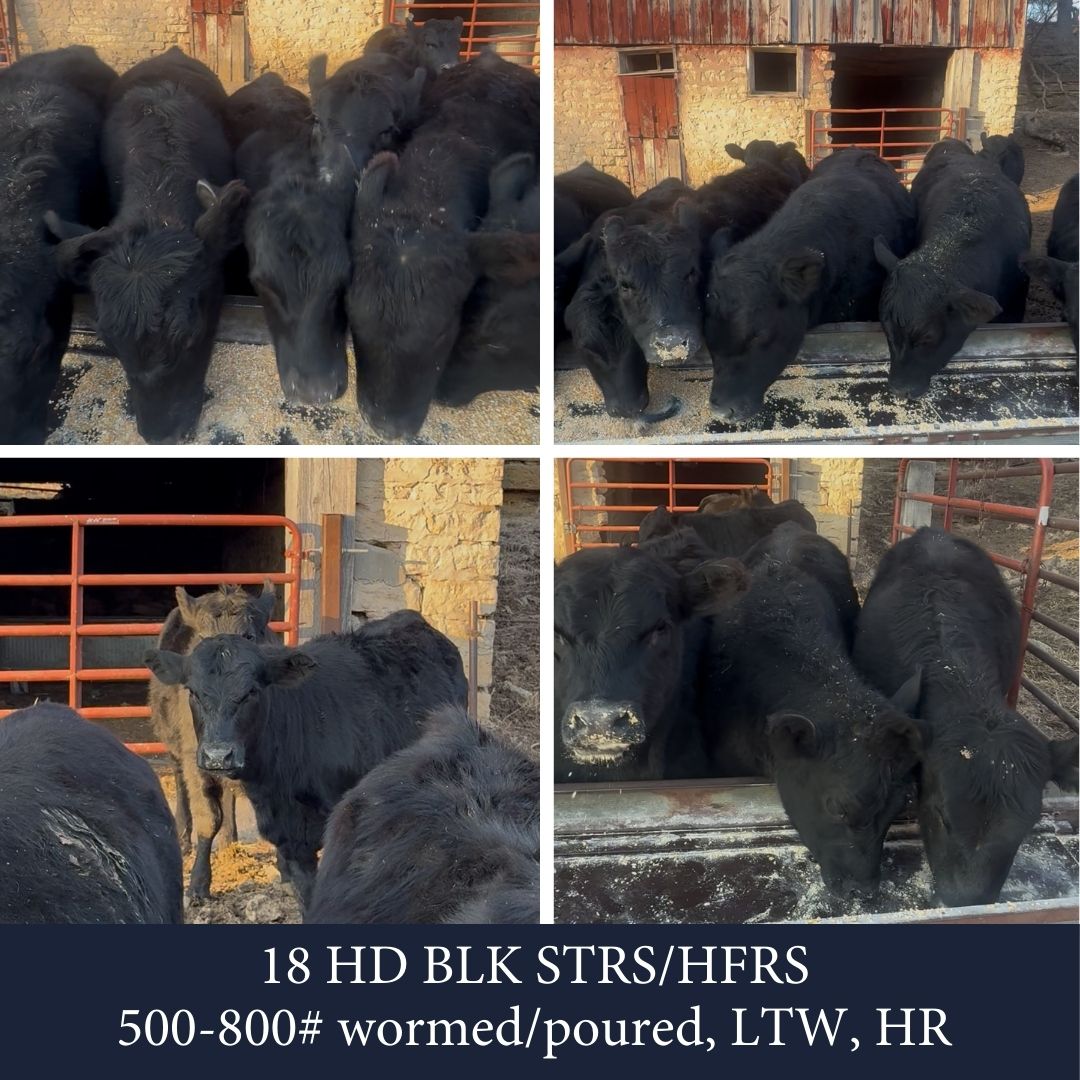 FEEDERS COMING: March 13, 2026 CONSIGNMENTS FOR THE NEXT FEEDER SALE: 45 HD Mostly BLK STRS/HFRS 650-700# 2 rounds shots 18 HD BLK STRS/HFRS 500-800# wormed/poured, LTW, HR 15 HD BLK STRS 800-950# GT, LTW, HR 13 HD BLK STRS/HFRS 500#